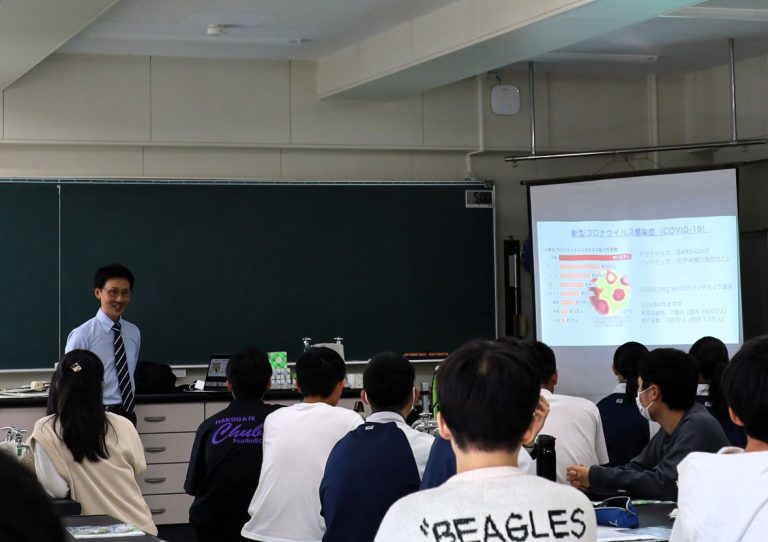 2024年10月11日、髙田 健介先生が函館中部高校で「ワクチンはなぜ効くのか?-病原体を記憶する免疫の仕組み-」と題した特別授業を行いました。
