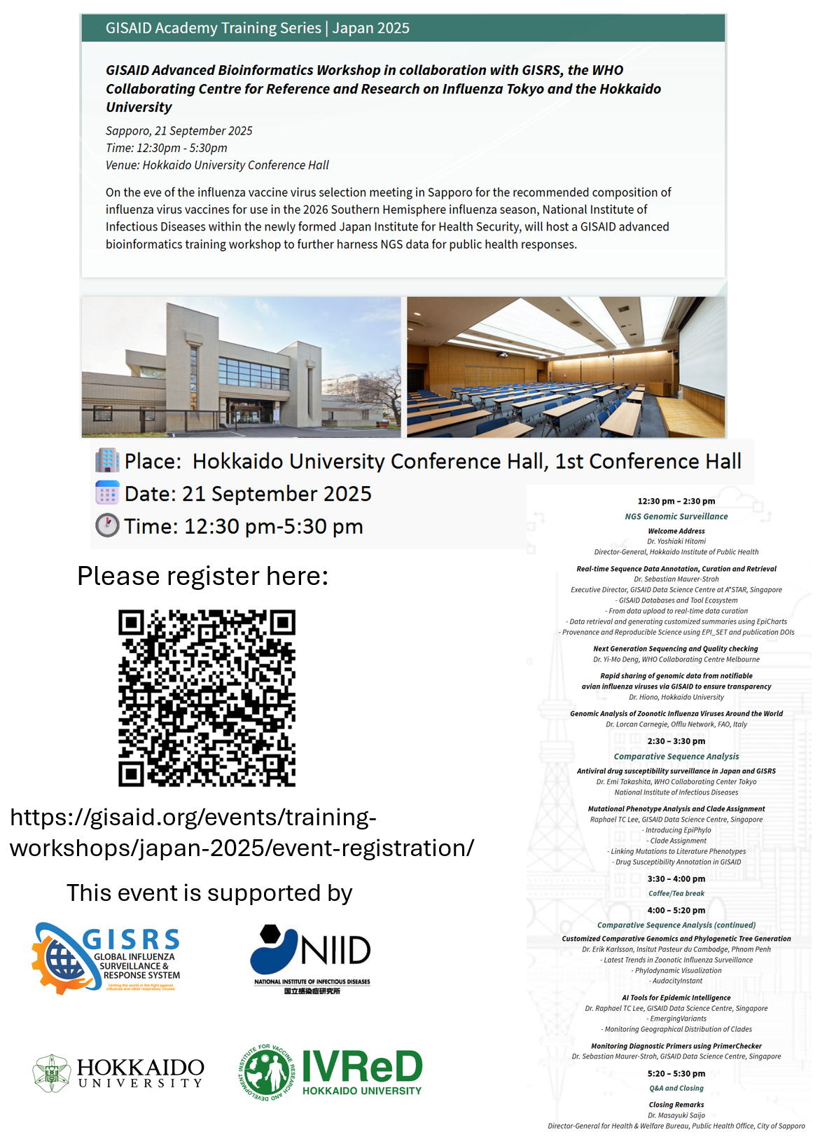 Event Date: Sep 21, 2025【Workshop】GISAID Academy Training Series – Advanced Bioinformatics (Japan, 2025) -